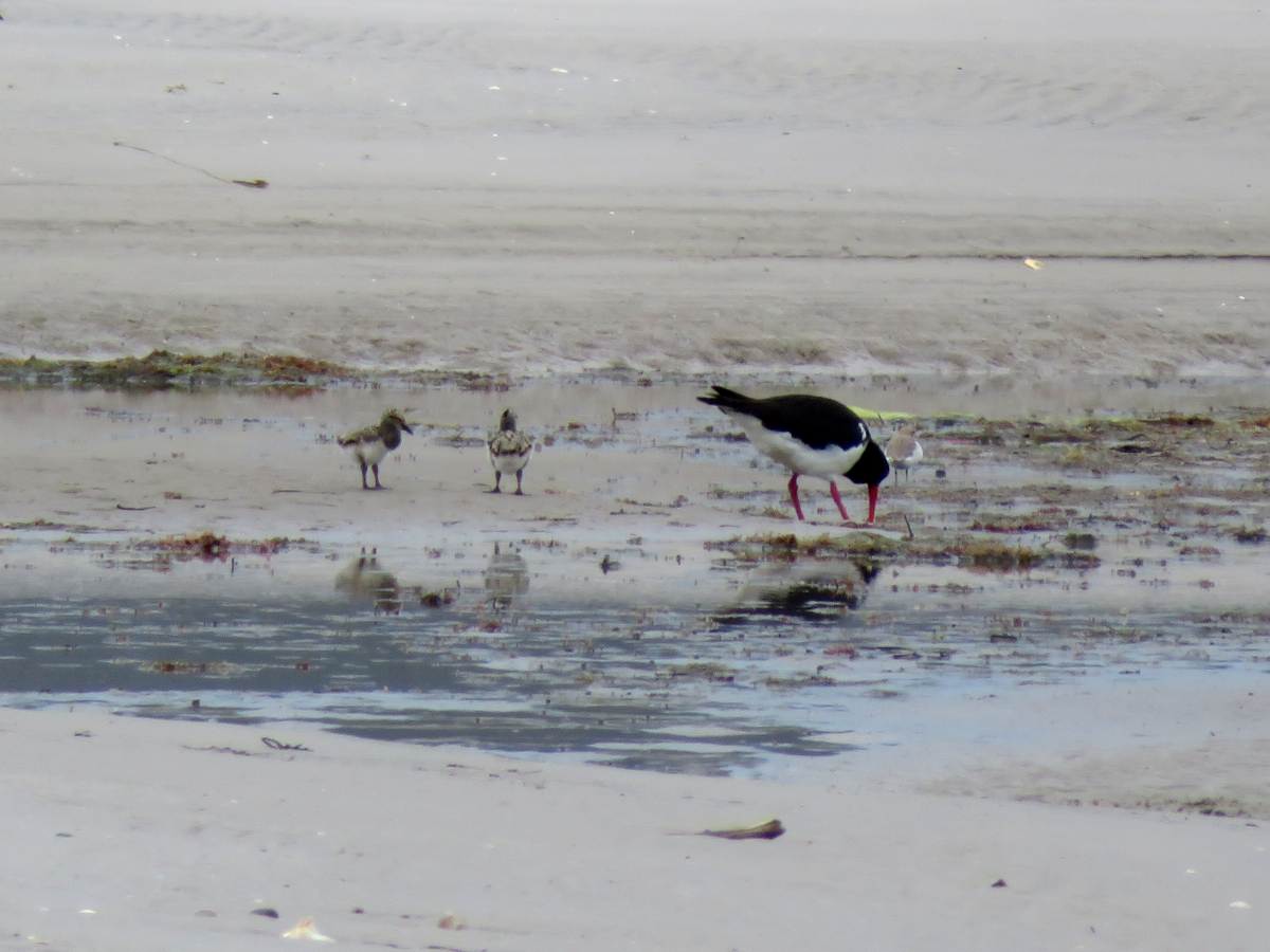 | Australian Pied Oystercatcher | Hooded Plover | Red-capped Plover | Chestnut Teal | Crested Tern | Kelp Gull | Little-pied cormorant | Masked Lapwing | Pacific Gull | Red-necked Stint | Silver Gull | Sooty Oystercatcher | White-faced Heron |