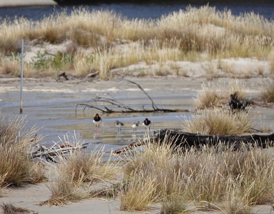 With the endorsement of PWS and the GSB Council, the Friends of Orford Bird Sanctuary spread seaweed and some driftwood onto the more elevated areas of bare sand resulting from the pumping. These actions were designed to improve habitat texture, diversity and cover for feeding/nesting shorebirds. We were delighted to see the results attract Hooded and Red-necked Plovers before we had even finished spreading the seaweed.